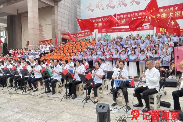 记者观察网山西9月1日电(杨晶 通讯员 王洁莹 周涛)近日,由运城市盐湖区委宣传部主办的“好运之城 爱尚盐湖”红色经典歌曲大家唱活动,在南风广场举行。全区14支合唱团的近千名群众齐聚于此,以饱含热血与信念的歌声,回溯波澜壮阔的抗战历史,致敬革命英雄、缅怀先烈,让伟大的抗战精神在新时代薪火相传。