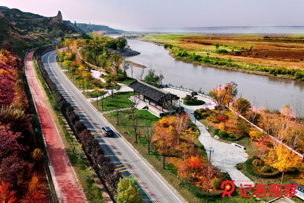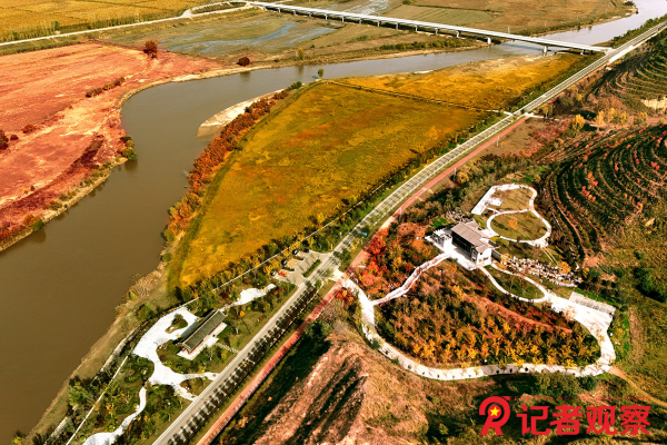 记者观察网山西11月11日电(杨晶)11月9日,游人在山西万荣汾河岸畔赏红叶。